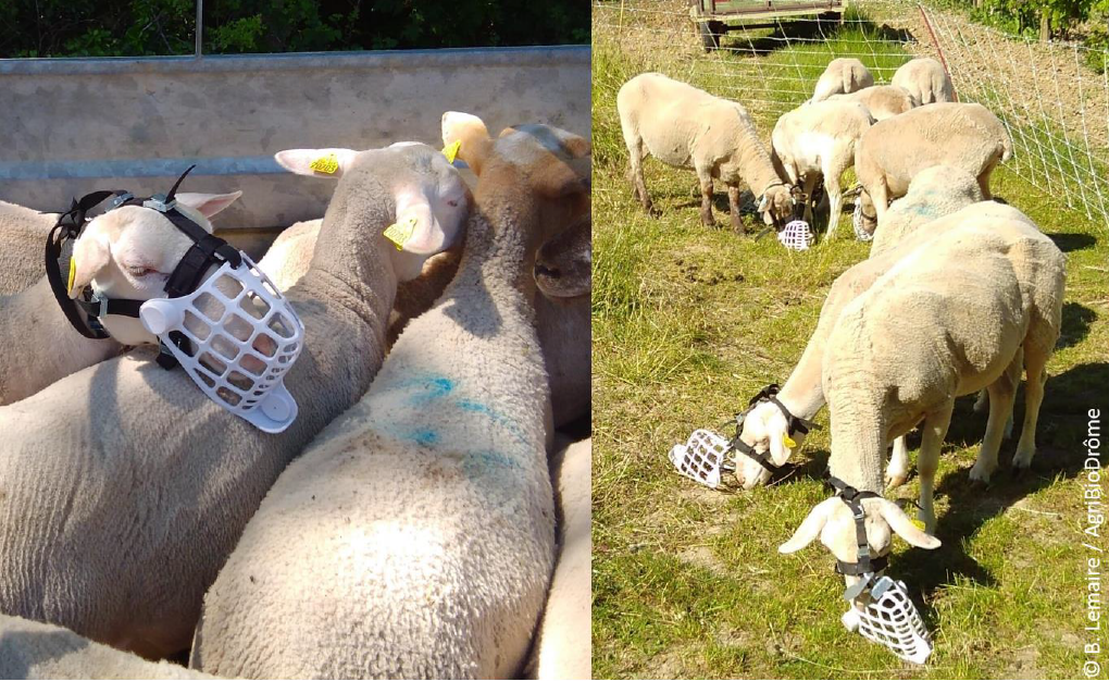 - l’emploi de dispositifs de protection physique portés par le verger (manchons de protection, filets anti-insectes) ou par les brebis (muselières),